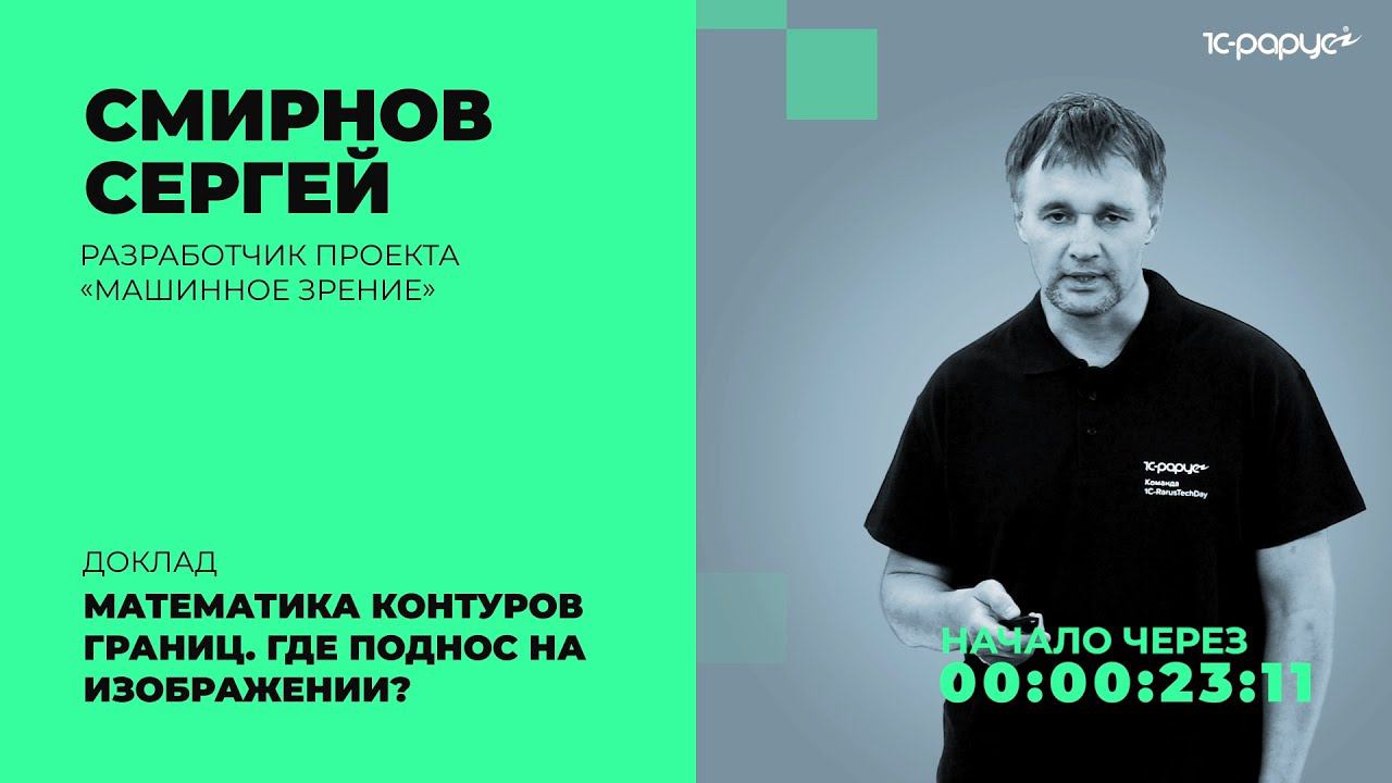 Доклад: «Математика контуров границ. Где поднос на изображении?», Смирнов Сергей, разработчик проекта «Машинное зрение». 0:00 Представление докладчика 1:41 Доклад Программа конференции и отдельные записи докладов (будут добавлены после 28 июля 2021): https://rarus.ru/events/20210722-1c-rarustechday-2021-471192/ Список предстоящих мероприятий 1С-Рарус: https://rarus.ru/events/ Полная запись конференции: https://youtu.be/0P7GlejSmSs