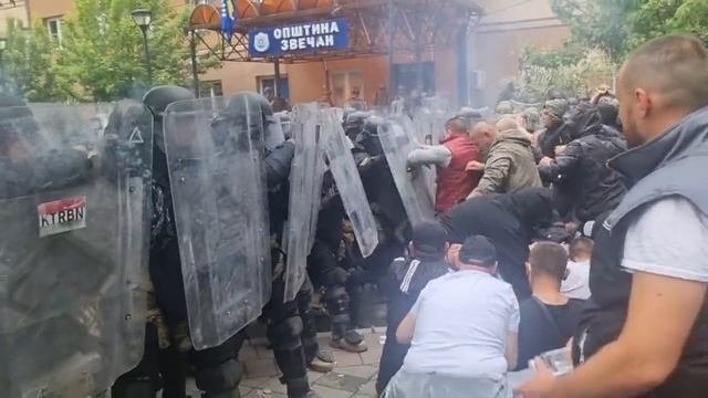 В Косово становится всё жарче: перед зданием муниципалитета в городе Звечан происходят столкновения между протестующими сербами и силовиками KFOR. Раздаются взрывы, применяются светошумовые гранаты. Натовские силовики используют слезоточивый газ, пишут СМИ