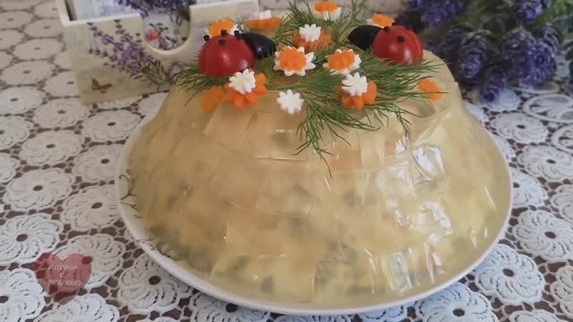 VK сообщество: https://vk.com/club225549357 ГОТОВИМ С ЛЮБОВЬЮ на Ютубе!!! https://www.youtube.com/@ГотовимсЛЮБОВЬЮ ГОТОВИМ С ЛЮБОВЬЮ RUTUBE: https://rutube.ru/channel/29858979/ Салат ХРУСТАЛЬНЫЙ.Салат заслуживает вашего ВНИМАНИЯ !!!Готовим с ЛЮБОВЬЮ 300 гр куриного филе 5 отварных яиц 1 отварной картофель 3 маринованных огурца 1 морковь 1 луковица 20 гр желатина + 50 мл воды 750 мл воды 4 горошин чёрного перца 1 лавровый лист домашний майонез,укроп,маслины,черри,соль