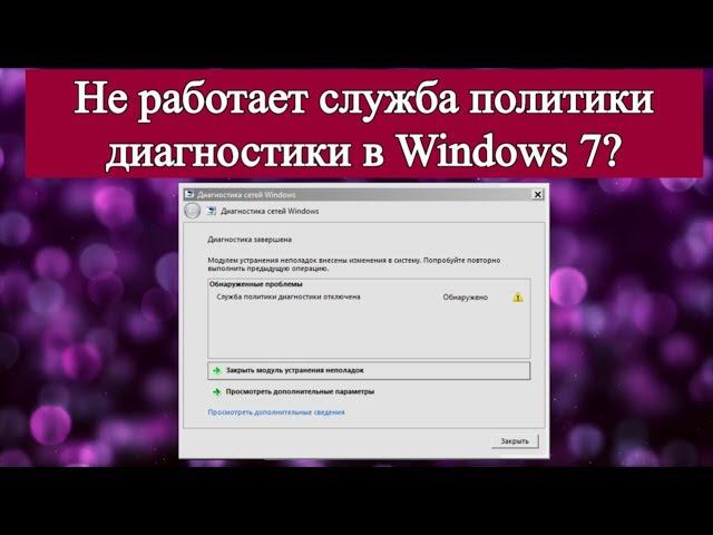 Не работает служба политики диагностики в Windows 7?