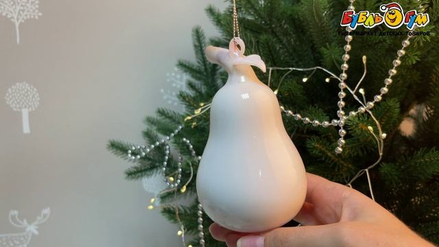 334412 Елочное украшение Груша стеклянное глянцевое белое 12см