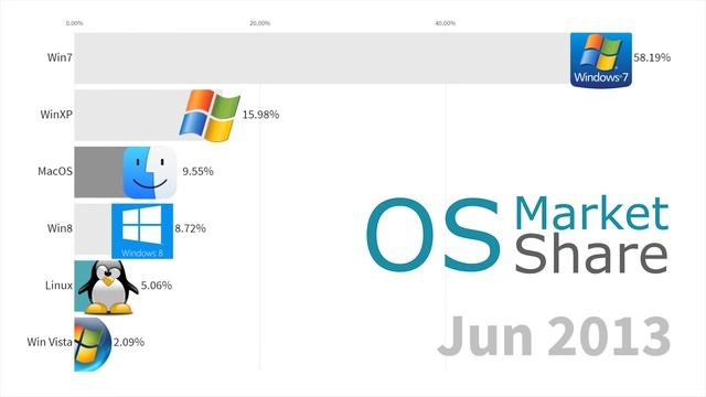 Самые популярные операционные системы (для настольных компьютеров и ноутбуков) 2003 - 2019