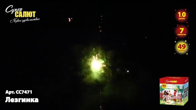 Батарея салютов Лезгинка (49/1) СС7471 https://spb-salut.ru/products/lezginka-49 Количество залпов/калибр: 49/1. Время работы до 25 сек. Высота подъема до 30 м. Эффекты: зеленые и сиреневые пионы; золотые мерцающие ивы с изумрудными огоньками; золотые драконы сопровождаются ослепительным мерцанием; золотые ивы переходят в красные георгины; золотые звезды с изумрудным мерцанием; пурпурные огоньки переходят в золотые трещащие хризантемы; пушистые хвосты с рубиновыми огоньками. Фасовка: 1/4. SPB SALUT - пиротехническая компания в Санкт-Петербурге. Основные направления деятельности: 1) Розничная торговля пиротехникой (офлайн магазины, интернет-магазин spb-salut.ru); 2) Организация и проведение профессиональных фейерверков; 3) Оптовая торговля пиротехникой по всей России. Адреса магазинов: 1) г. Санкт-Петербург, ул. Тележная, д. 15, лит. Б (вход с ул. Кременчугская), м. Площадь Восстания. Ежедневно с 10:00 до 22:00 2) г. Санкт-Петербург, пр. Полюстровский, д. 28Б, м. Площадь Ленина. Ежедневно с 10:00 до 22:00 Благодаря большому опыту, наши специалисты с легкостью создадут для Вас уникальное фейерверк шоу, которое сделает любой Ваш праздник незабываемым, будь то день рождение, свадьба, корпоратив или фейерверк городского масштаба! Почта: info@spb-salut.ru Сайт: https://spb-salut.ru Тел.: +7(812)242-82-24; +7(952)287-80-85.