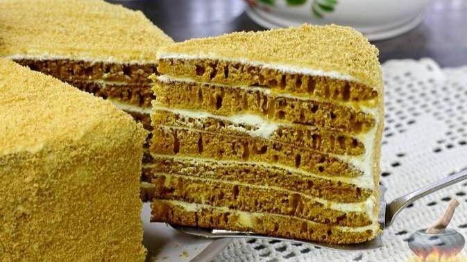 Если у вас нет духовки, но есть желание приготовить торт, этот рецепт станет настоящей находкой. Медовые коржи готовятся прямо на сковороде и смазываются нежным кремом из сметаны и сливочного сыра, который придаёт торту лёгкую кислинку. Сверху - слой измельчённого печенья, подрумяненного на сковороде. #ТортМедовый #ТортНаСковороде #ТортПраздничный #ТортМедовик
