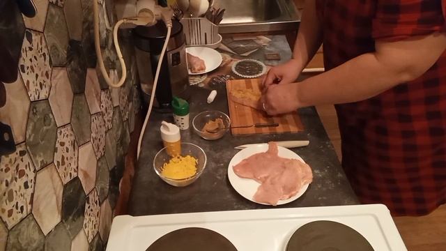 Ингредиенты: грудка - 3 шт. горчица - 1-2 ст.л. сыр твёрдых сортов - 80 гр. соль, перец черный молотый по вкусу. масло растительное для обжарки - 4 ст.л.