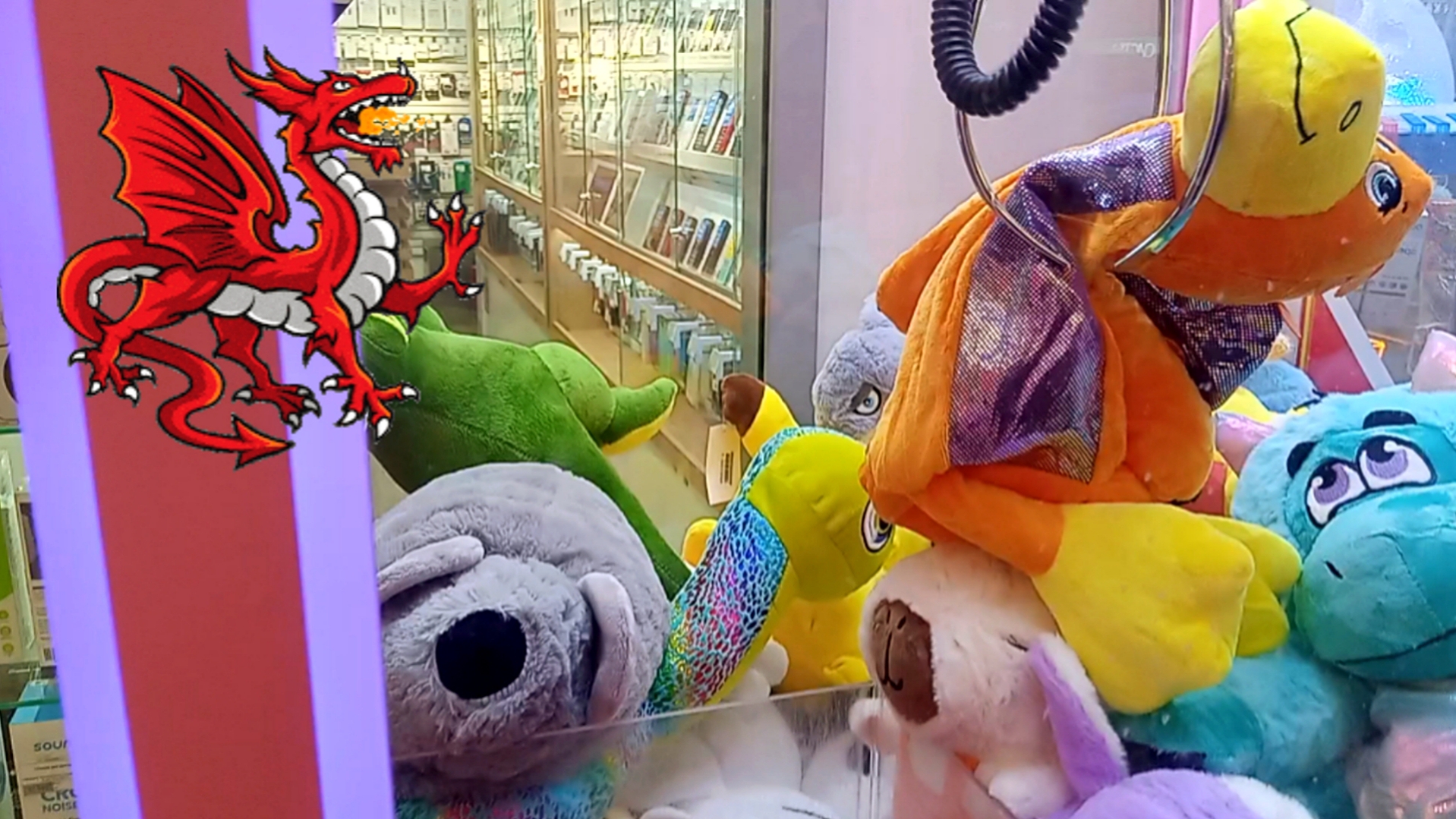 Сыграли и достали большие игрушки из автомата Хватайка.