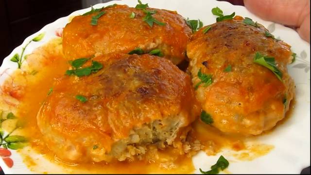Это блюдо давно и надолго у нас в меню. Рецепт: Фарш - 650 гр Морковь - 1 шт Яйца - 1 шт Лук - 1 шт Соль, перец по вкусу Чеснок сушёный - 1 ч.л Гречка - 100 гр (сухая) Соус: Сметана - 2 ст.л Томатная паста - 1 ст.л Соль - 1 ч.л без горки Сахар - 1 ч.л Мука - 1 ст.л Вода - 400 мл