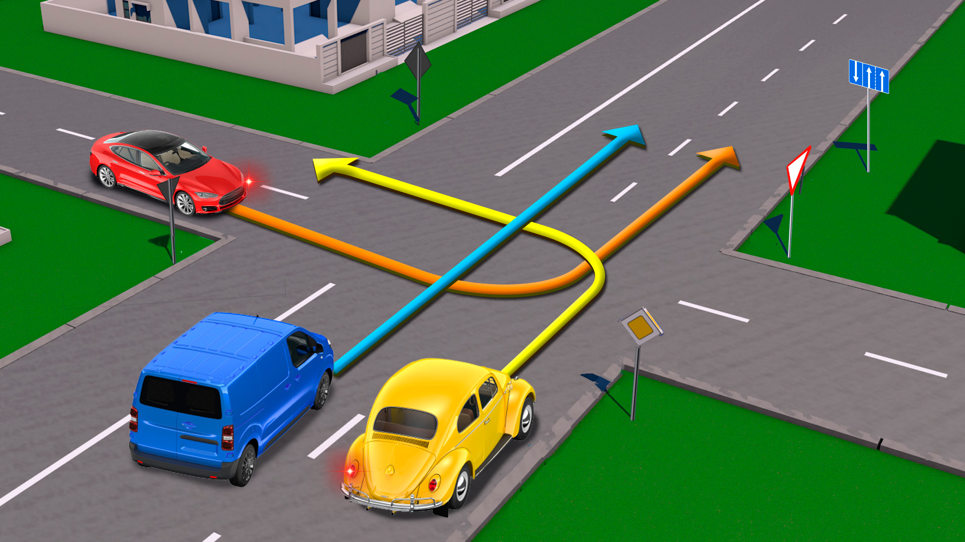 Кто из водителей выбрал запрещенную траекторию для движения?