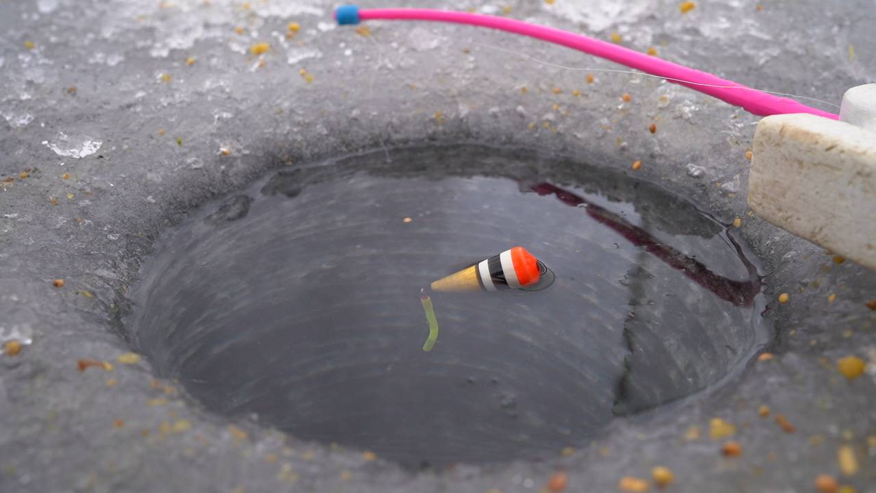 Только закормил лунку и поплавок сразу всплыл. Зимняя рыбалка