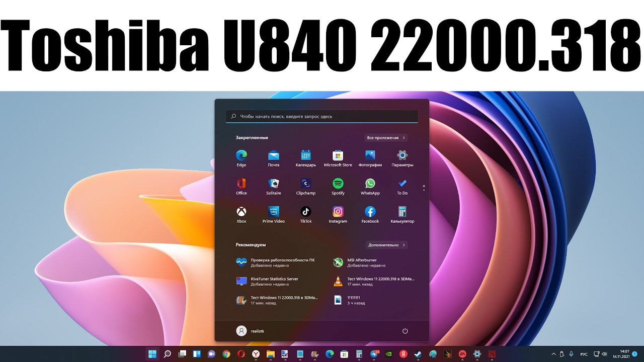 Тест Windows 11 22000.318 в 3DMark на неподдерживаемом Toshiba U840W