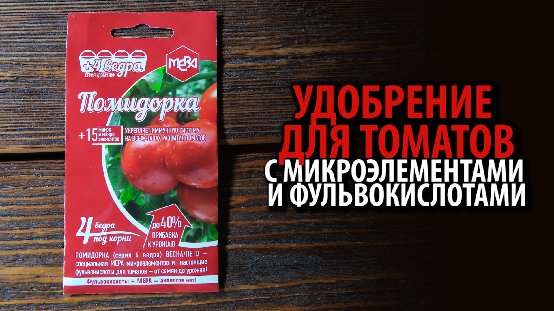 Удобрение универсальное для томатов МЕРА ПОМИДОРКА Удобрение МЕРА «Корнишончик» — специально подобранный комплекс микроэлементов для огурцов и кабачков. Высокая эффективность состава обусловлена тщательным подходом к отбору компонентов и их хелатной форме. Удобрение полностью безопасно для растений и человека благодаря полностью натуральному составу. Средство может быть использовано для замачивания семян перед посадкой, а также корневых и внекорневых подкормок на всех этапах развития растений. Состав удобрения для томатов МЕРА «ПОМИДОРКА» 5 г = 40-50 л удобрения Из 1-го пакета подкормки получается 40-50 л рабочего раствора для яркой жизни Ваших цветов. Уникальный состав Включает иммуномодуляторы для укрепления иммунной системы томатов на всех этапах роста растения. Уникальные качества Содержит макро- и микроэлементы, повышает качество урожая, улучшают обменные процессы. Соли гуминовых веществ % до 85 Гуминовые кислоты % до 55 Фульвокислоты % до 28 Массовая доля макро- и микроэлементов не менее: калий (К) – 9; сера (S) – 3. не более: железо (Fe) 0,18; марганец (Mn) – 0,10; медь (Cu) – 0,12; цинк (Zn) – 0,11; молибден (Мо) – 0,012; селен (Se) – 0,005; бор (В) – 0,003; кобальт (Со) – 0,10. присутствуют: азот, фосфор, кальций, магний, кремний, Показатель концентрации водородных ионов (pH 6%): 7,0-10,0 Результаты применения удобрения МЕРА «Помидорка» Увеличение урожайности томатов до 40%. Увеличилось количество завязей, сократилось число опавших завязей и плодов. Корневая система растений стала более мощной и сильной. Увеличился средний размер плодов, а их цвет стал более насыщенным. Садоводы отмечают улучшение вкусовых качеств томатов, повышение сахаристости. Сократились сроки созревания плодов на 5-7 дней. Растения стали более устойчивыми к заболеваниям пасленовых культур и вредителям. Действие удобрения также направлено на улучшение структуры и состава почвы. При обработке рассады отмечена лучшая приживаемость сеянцев. Удобрение поставляется в сухой форме. Средство рекомендовано для замачивания семян перед посадкой, а также корневых и внекорневых подкормок. 1 г порошка достаточно для приготовления 10 литров раствора для опрыскивания. Рекомендованная периодичность внекорневых подкормок – 1 раз в 2 недели. Действие удобрения для томатов МЕРА «ПОМИДОРКА» Удобрение MEРA для томатов «ПОМИДОРКА» с фульвокислотами Удобрение MEРA для томатов «ПОМИДОРКА» с фульвокислотами Удобрение МЕРА ПОМИДОРКА — действенный транспортный агент специальной БИО МЕРЫ питательных веществ для плодообразования томатов на всех этапах вегетации растений и времени года (весна/лето/осень). Укрепляет имунную систему на всех этапах развития томатов. Благодаря использованию удобрения ПОМИДОРКА у томатов усовершенствуется рост, усиливаются корни, лучше становится урожайность (а именно, вкусовые параметры и размеры самих томатов). Вместе с тем, удобрение совершенствует структуру земли около растения, формируют в ней совокупность разных типов микроорганизмов. *** Успех и секрет удобрений МЕРА состоит из комплекса факторов: — ювелирная мера в подборе композиции микро и макро элементов для каждого наименования в отдельности; — наличие 18-20 аминокислот и хелатов; — высокое содержание гуминовых кислот – 50-85%; Но самое главное отличие от обычных гуматов и гуминовых удобрений – это 24-32% фульвокислот в с
