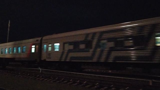 По 2гл.пути проследовал поезд 142С "Таврия" Симферополь - Пермь. Управляет поездом ТЭП70БС. СКЖД. 27.12.23г. 22:48.