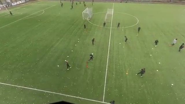 Футбольная разминка и подготовка пас, первое касание и дриблинг.