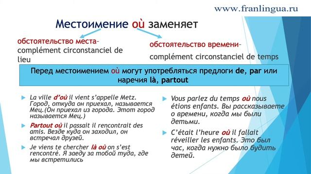 В видео представлено употребление простых форм относительных местоимений qui, que, où, dont. Автор Е.В. Высоких. La vidéo présente en russe l'emploi des pronoms relatifs simples qui, que, où, dont. L'auteur est E. Vyssokikh