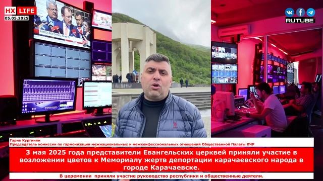 3 мая 2025 года представители Евангельских церквей приняли участие в возложении цветов к Мемориалу жертв депортации карачаевского народа в городе Карачаевске. ссылка: https://t.me/bishoponline/23