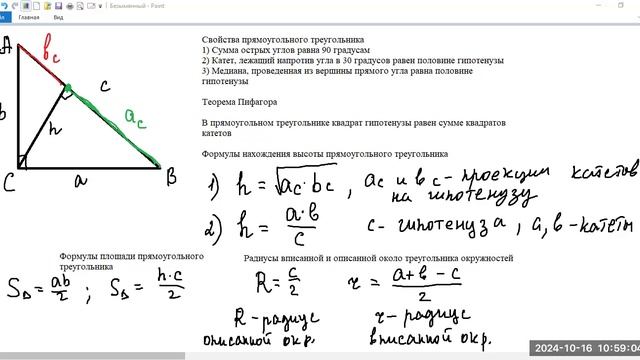 1610 геометрия прямоугольный треугольник