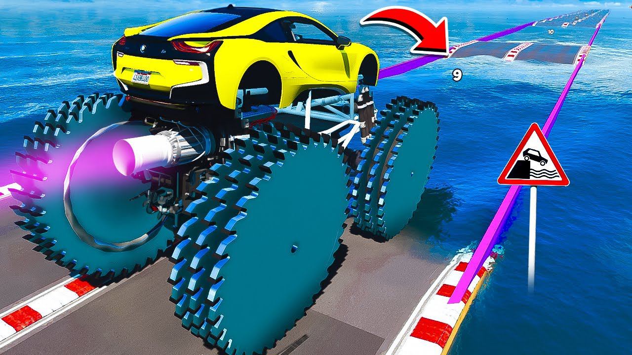 СМОЖЕТ ЛИ ГИГАНТСКИЙ BMW I8 НА КОЛЁСАХ ПИЛАХ ПРОЕХАТЬ ГЛУБОКУЮ ЯМУ С ВОДОЙ ГТА 5 МОДЫ РАЙЛЮХА