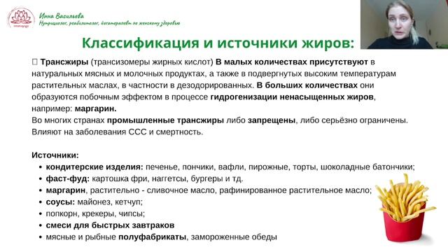 Часто роль жиров сильно демонизируют. И действительно, некоторые виды жиров опасны для сердечно-сосудистой системы, НО нужно знать какие именно. Большая часть из них жизненно необходима для полноценной жизни организма. Подписывайтесь на канал, ставьте палец вверх. Всех обняла, ваша Инна Васильева Меня можно найти в соцсетях: Инстаграм https://instagram.com/innamayoga?utm_medium=copy_link Телеграмм-канал https://t.me/innamayoga ТикТок tiktok.com/@innamayoga Сайт https://innamayoga.taplink.ws Для записи на консультацию по питанию, анализам, общим вопросам пишите в директ или вотсап (ссылка есть на сайте)