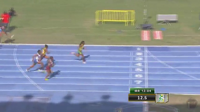 Britany Anderson (Vere) takes the Class 2 girls 100m H in 13.12 Champs 2017
