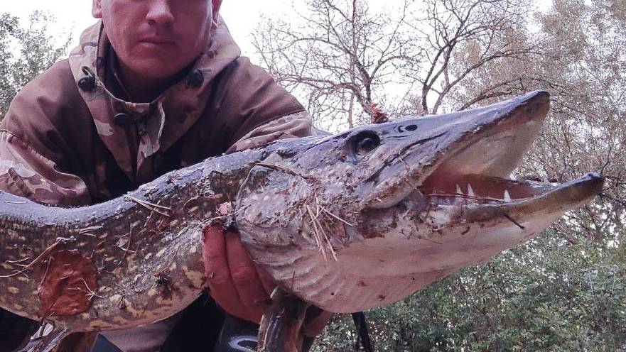 Щука на Жереховой точке. Вечерний Неман. Забыл включить экшен камеру, снял паклю только жереха.