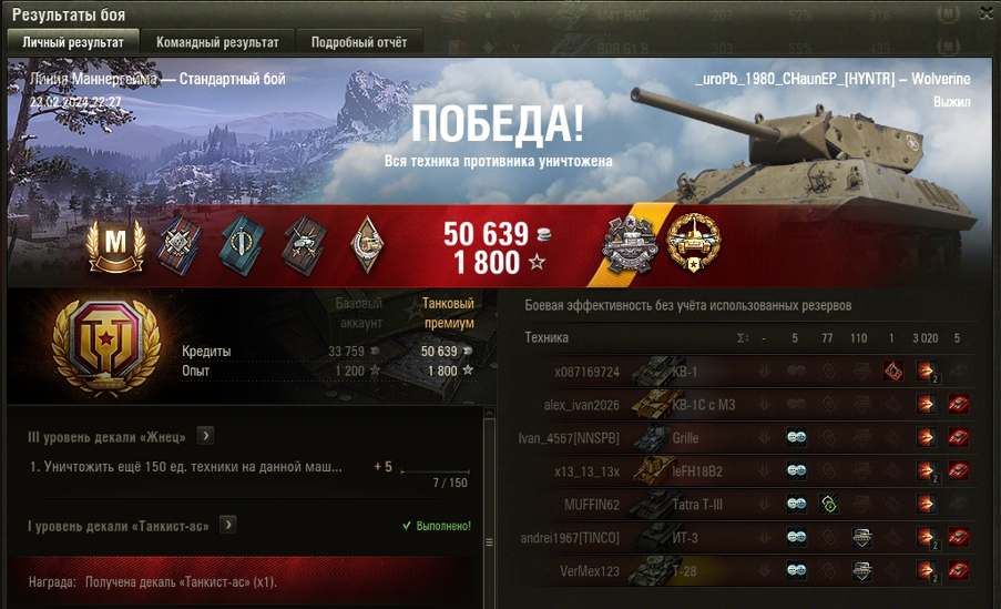ЛИНИЯ МАННЕРГЕЙМА МАСТЕР на М10 Wolverine ОПЫТ: 1200 СУММАРНЫЙ УРОН: 3097 медаль КАЛИБР и ПАСКУЧЧИ