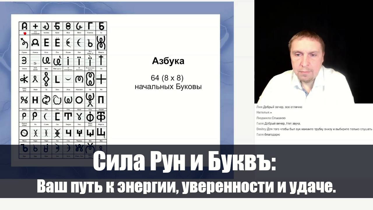 «Азбука Предков — путь познания духовной истины. Основы грамоты Всеясветной Руси». Познайте себя, раскройте своё предназначение, помогите своему РОДу и обретите здравие при помощи знаний наших предков. https://lp.dm80.ru На нашем семинаре вы сможете: - Узнать как раскрывать свои творческие способности через изучение Буквъ и Рун. - Понять как знаки описывают устройство всего Мiра и Человека в нём. - Попробовать психофизических упражнениях по знакам, которые помогут вам наладить связь с вашим внутренним миром. - Научитесь зрить истинные образные значения Буквъ и получать через них ответы на важные вопросы своей жизни. - Обрести уверенность, увеличить свою энергетическую активность и привлечь удачу в свою жизнь. Для чего это стоит изучать ? — Азбука наших предков — это по сути универсальная система знаний об устройстве человека и МiроЗдания. Через изучение Буковъ вы познаете многомерность Нас и Нашего Мира в котором мы существуем; — Познавая взаимосвязи Буковъ и принципы формирования различных знаков у вас увеличиться «комбинаторика» мозга и будет происходить раскрытие творческих способностей; — Происходит раскрытие образного визуального восприятия Буковъ древней Руси и других знаков; — Изучая упражнения по Буковам вы обретёте энергетическую активность, научитесь не уставать и восстановите Здравие своего организма; — Обретёте УДачу, что означает в переводе с языка образов наших предков: «Дача — поддержка небесных сил». История сокращения и упрощения нашей азбуки — это история потери человечеством своей разумности — от 100% задействованного мозга к 3-5%. Изучение грамоты наших прародителей — это путь к восстановлению утраченных древних знаний об устройстве Мiра и Человека в нём.