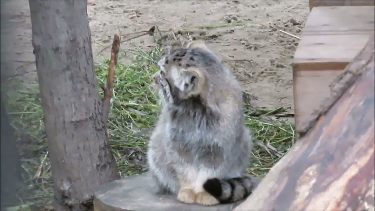 Котята манула Евы. Один быстро убежал в домик, а другой немного осмотрелся и тоже ушёл 15.08.2023
