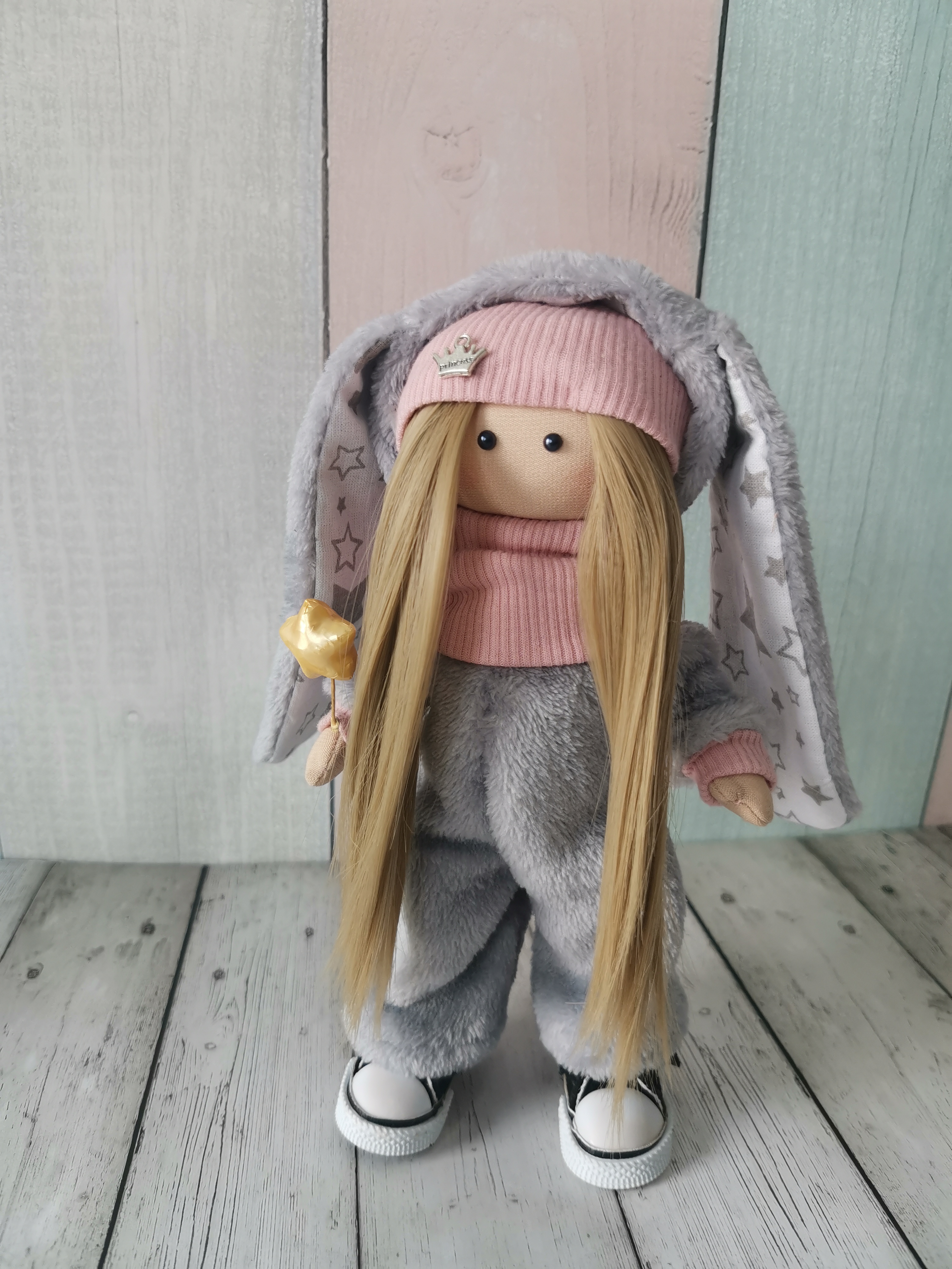 Обзор: Кукла ручной работы "Зайка", рост 20 см.