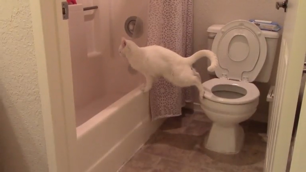Кот-акробат сходил в туалет))