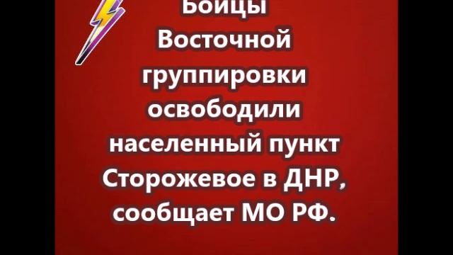 Бойцы Восточной группировки освободили населенный пункт Сторожевое в ДНР, сообщает МО РФ.