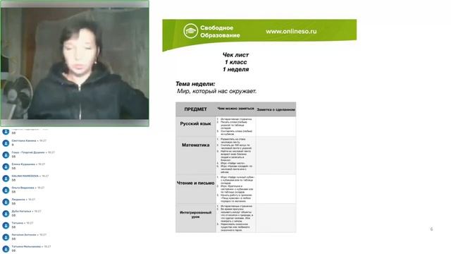 Пример чек-листа для начальной школы