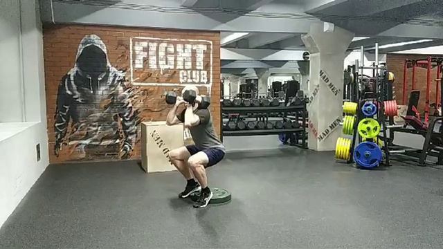 Присед с гантелями на груди с поднятым пятками