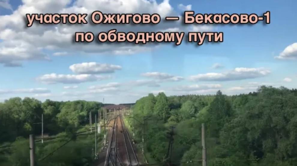 0:00 остановка Ожигово 0:13 Ожигово — Бекасово-1 2:29 станция Бекасово-1 2:58 пятая ветка 3:05 станция Бекасово-1 4:09 железнодорожный мост, перегон Бекасово-Сортировочное — Бекасово-1 4:16 начало обводного пути 4:24 станция Бекасово-1 5:00 вторая ветка 5:08 станция Бекасово-1 6:21 конец второй ветки 6:31 станция Бекасово-1 8:51 первый путь БМО 8:59 станция Бекасово-1 9:50 третья ветка 9:57 станция Бекасово-1 10:57 Киевский ход 11:05 станция Бекасово-1