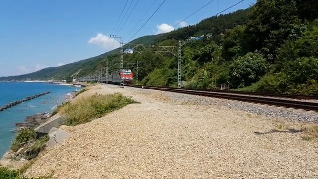 15 июля 2017 года в 11:38 перегон разъезд Водопадный - Лазаревская Северо-Кавказская железная дорога это пример того, что "тренироваться надо на кошках" video bummer! 2ES4K-129 with 22 long passenger cars July 15, 2017 at 11:38 stage drive Vodopadniy - Lazarevskaya Severo-Kavkazskaya Railway this is an example of “training on cats”
