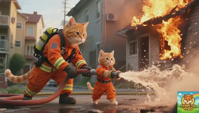 МУЛЬТФИЛЬМ ДЛЯ ДЕТЕЙ, Котенок в тигровой шапочке и снаряжении пожарного спасает бабушку