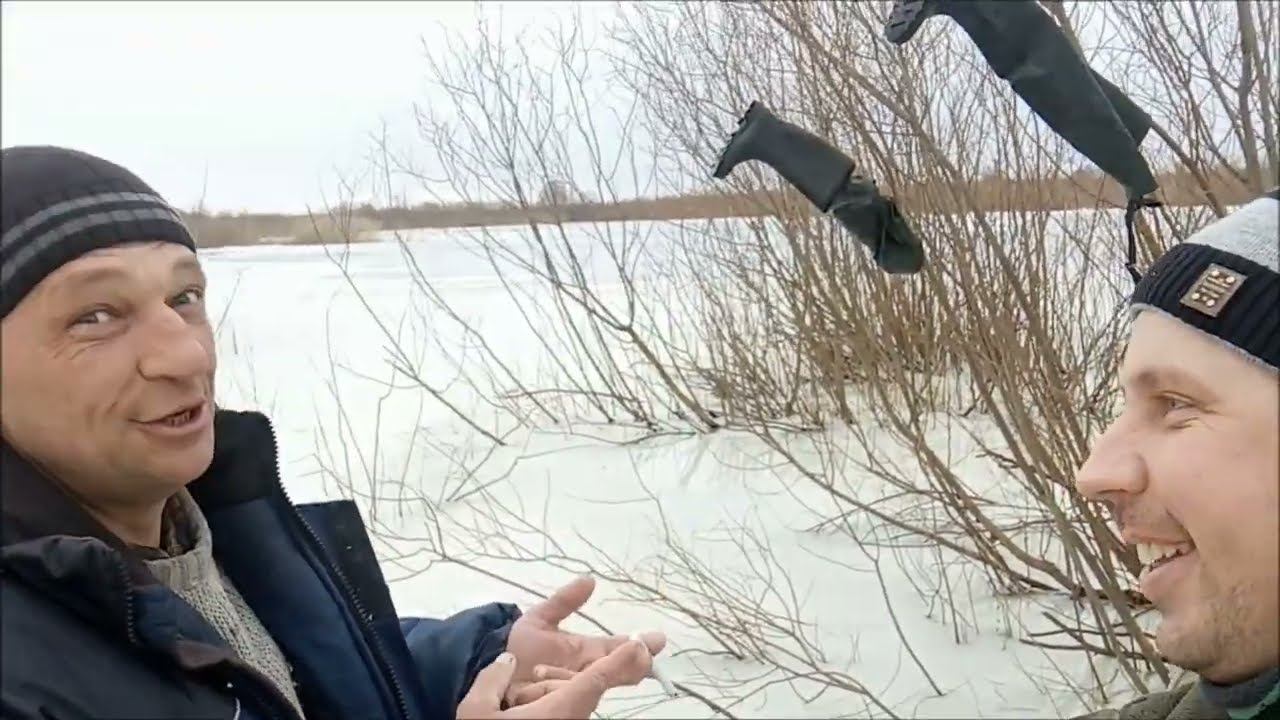 Опасный лёд Зимняя рыбалка Старицы реки Припять
