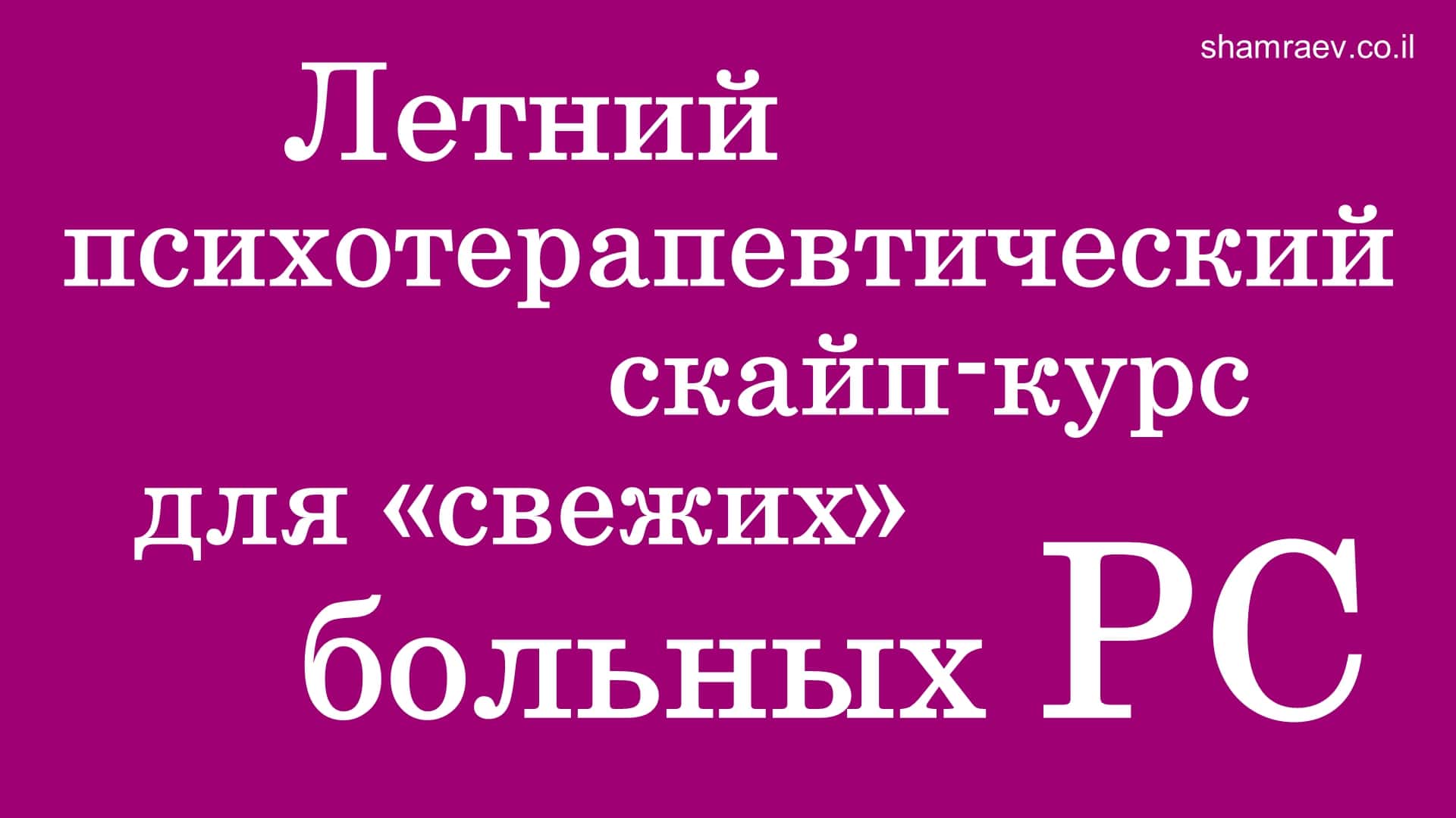 Летний психотерапевтический скайп-курс для «свежих» больных рассеянным склерозом (2023) Дополнительную информацию можно получить по скайпу: petrshamraev с 8:00 до 22:00 (время московское) Руководитель Психотерапевтического Исследовательского Центра автор открытия в области медицины психолог-психотерапевт Петр Шамраев Тел: +972-52-529-95-91 Skype: petrshamraev E-mail: petrshamraev@gmail.com Web: http://shamraev.co.il YouTube: https://www.youtube.com/@user-di4oi5lk7q YouTube: https://www.youtube.com/@user-tb6ej6ol2b/videos RuTube: https://rutube.ru/channel/10134425/videos/ Одноклассники: https://ok.ru/kakvylech Вконтакте: https://vk.com/id342874893 Dzen.ru: https://dzen.ru/id/60c06e755fe9c068e6ba4b1d Vimeo: https://vimeo.com/user183147794 Livejournal: https://petrshamraev.livejournal.com/ TikTok: https://www.tiktok.com/@petrshamraev?lang=ru-RU Instagram: https://www.instagram.com/petr._shamraev/ Подпишитесь на мой канал, и вы всегда будете в курсе последних открытий #петршамраев #каквылечитьрассеянныйсклероз #эмоциональныйкапитал