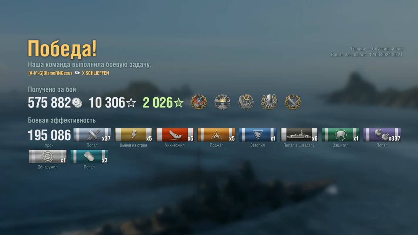 Линкор X Schlieffen : +195к урона 5 фрагов на карте Греция - World of Warships