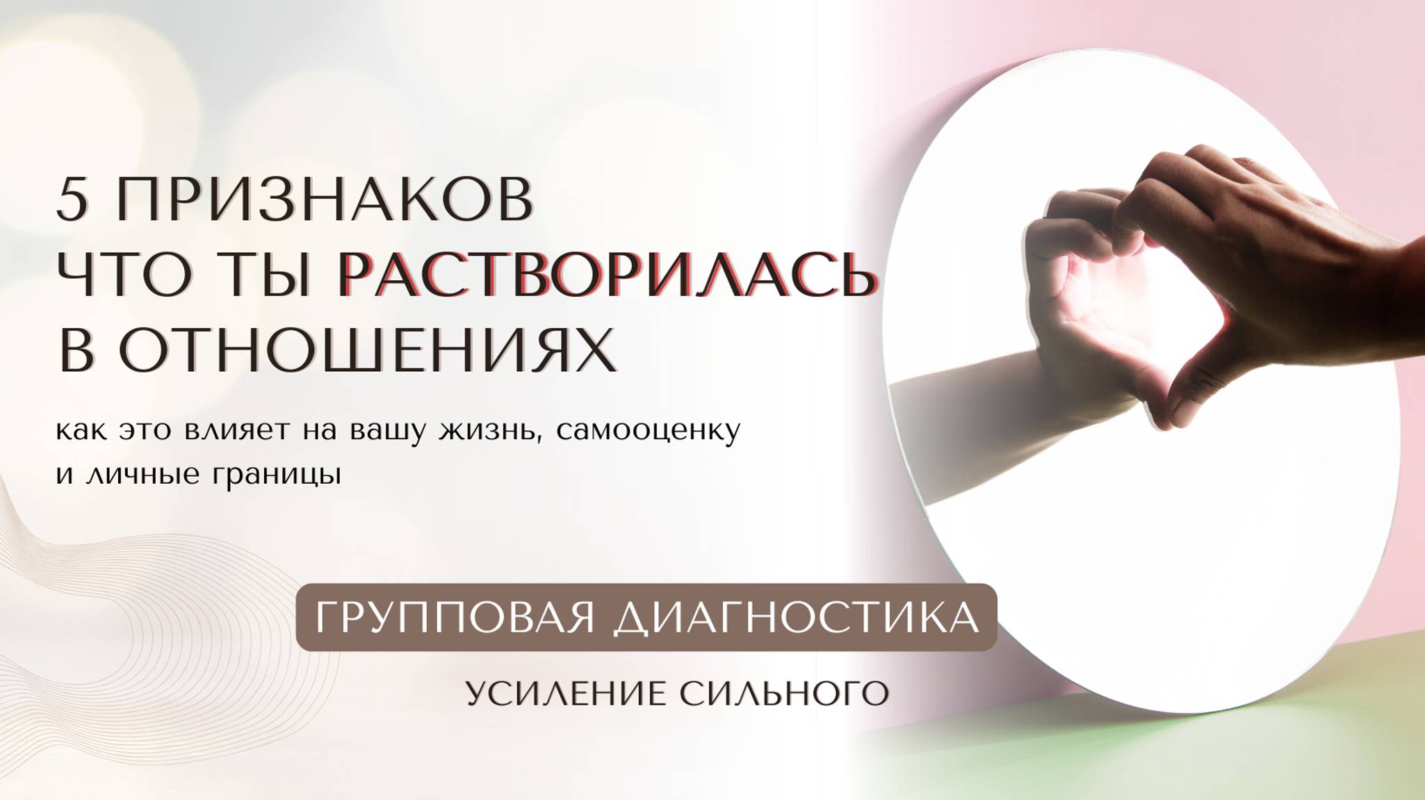 На этом эфире мы разобрали основные признаки, которые указывают на потерю себя в отношениях, и обсудили, как это влияет на вашу жизнь, самооценку и личные границы. 01:34 - Если я буду хорошей, то он меня не бросит.. 4:30 - Если ты выглядишь в этих отношениях хуже, чем была.. 11:15 - Если нет увлечений, хобби, подруг.. 21:12 - Если нет твоих личных денег 27:23 - "20 лет в гражданском браке - все пополам" 33:50 - "НАМ НАДО СЕРЬЕЗДНО ПОГОВОРИТЬ" 37:12 - Обесценивание со стороны мужчины Также были разборы девушек: 47:10 - Не могу завершить отношения с бывшим. Мужчины хотят только секса 1:07:00 - Живу с психологическим тираном. Мама и бабушка жили с мужчинами подобного типа 1:23:20 - Нет дохода. Живем с дочей на алименты ее отца. Что делать? Эфир поможет вам увидеть свои скрытые сценарии и получить новые осознания для изменений. В квантовом поле нет вопросов без ответов и не решаемых задач. Для вас это возможность трансформировать его в общем поле ✨ Твой первый шаг, который ты можешь совершить на пути к личной трансформации перейти в мой Телеграмм канал https://t.me/elena_navoenko, именно здесь проходят Диагностики. Взаимодействие со мной 👇 https://navoenkolena.ru И делитесь в комментариях своими инсайтами после просмотра эфира ❤️