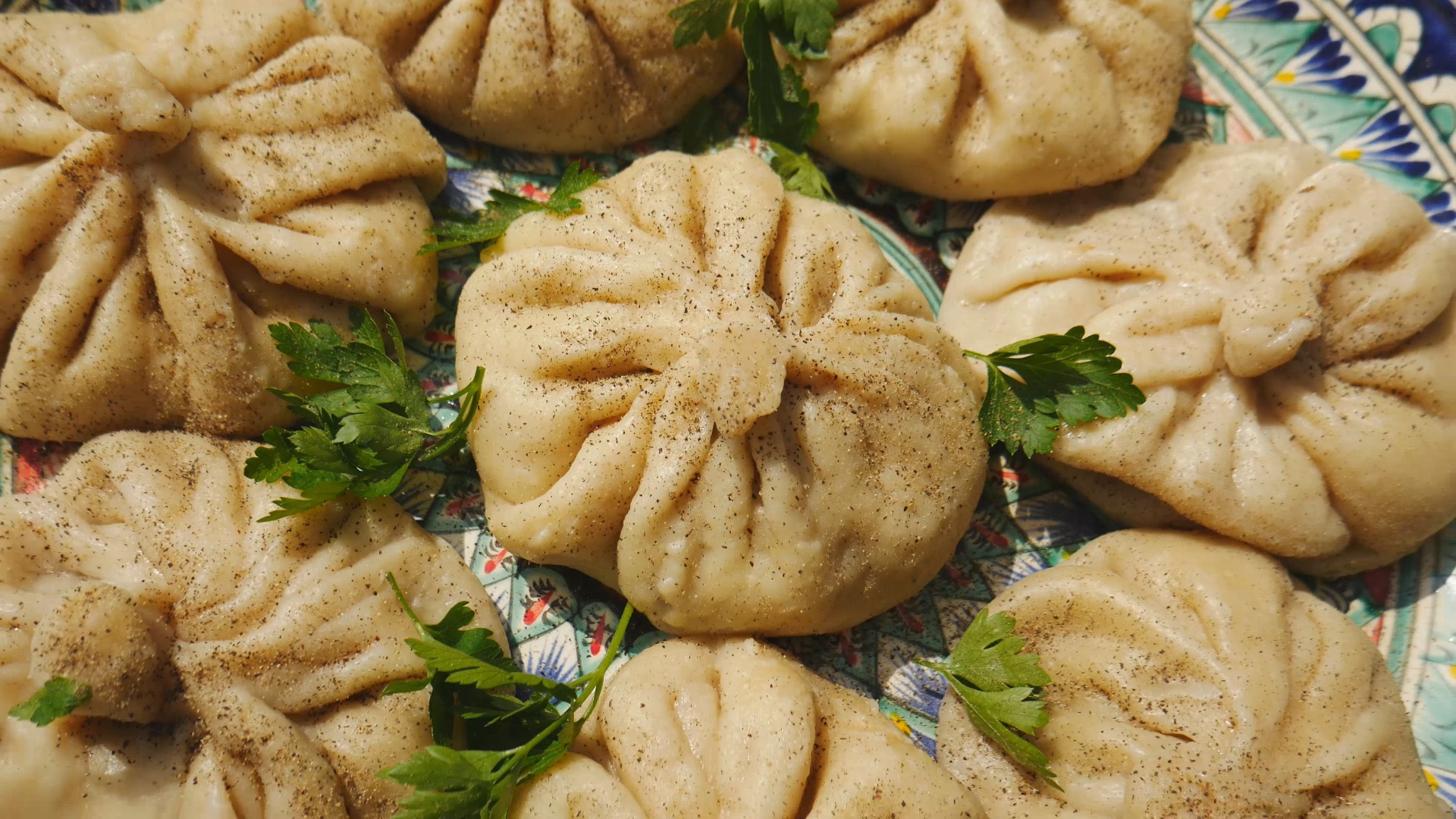Хинкали или грузинские пельмени в казане на костре.