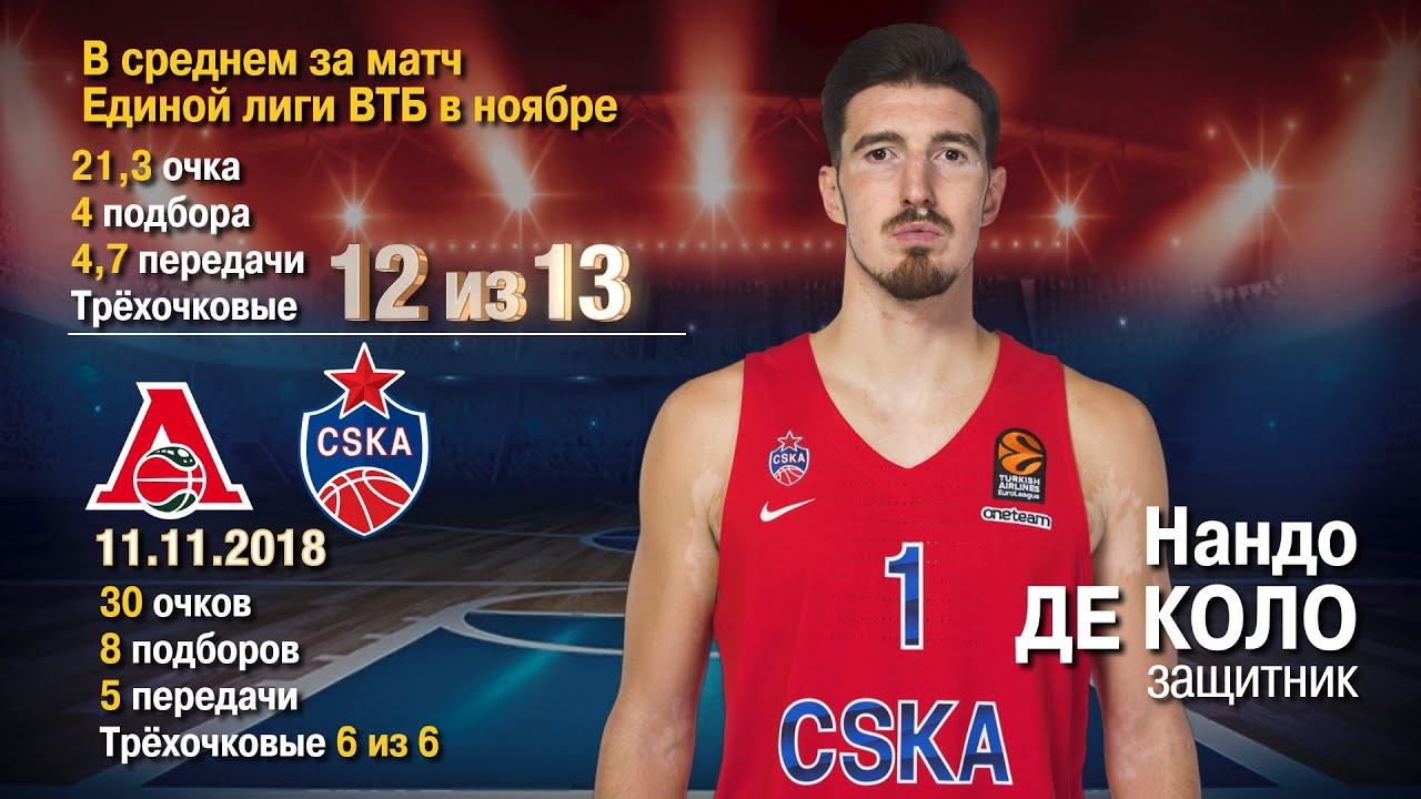 Невероятная точность Нандо Де Коло в ноябрьских матчах Единой лиги ВТБ: 12 из 13 трехочковых попаданиях. Все броски французского снайпера в подборке от #CSKAbasketTV