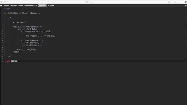 fourteenth lesson of the series WordPress 101 for Beginner Developers, Edit the menu with the Walker Class - Part 1. Learn how to build a Theme from scratch, create the folder and the necessary files to install and activate a custom theme. This tutorials are meant to be a starter help for developers who never used WordPress before and want to learn how to code themes and plugins without using pre-coded assets. GitHub Repository: https://github.com/Alecaddd/WordPress101 1st Part: https://www.youtube.com/watch?v=oTRZYnYQlmo 2nd Part: https://www.youtube.com/watch?v=NF6r3Ejpris 3rd Part: https://www.youtube.com/watch?v=Sz0z-Gyp3nA 4th Part: https://www.youtube.com/watch?v=pJ4NTBdvyj4 5th Part: https://www.youtube.com/watch?v=aUxDz7vXilQ 6th Part: https://www.youtube.com/watch?v=ghmdq1hEm14 7th Part: https://www.youtube.com/watch?v=ut5b0gSpV1w 8th Part: https://www.youtube.com/watch?v=aSXitOevqA0 9th Part: https://www.youtube.com/watch?v=GA--ROatgYM 10th Part: https://www.youtube.com/watch?v=e8nJMopiH2Q 11th Part: https://www.youtube.com/watch?v=CUefAciz5m8 12th Part: https://www.youtube.com/watch?v=8Hn3k6Zsp9g 13th: https://www.youtube.com/watch?v=xEA2zviCakw Tutorial Page: http://www.alecaddd.com/wordpress-101-wordpress-beginner-developers/ http://www.alecaddd.com/