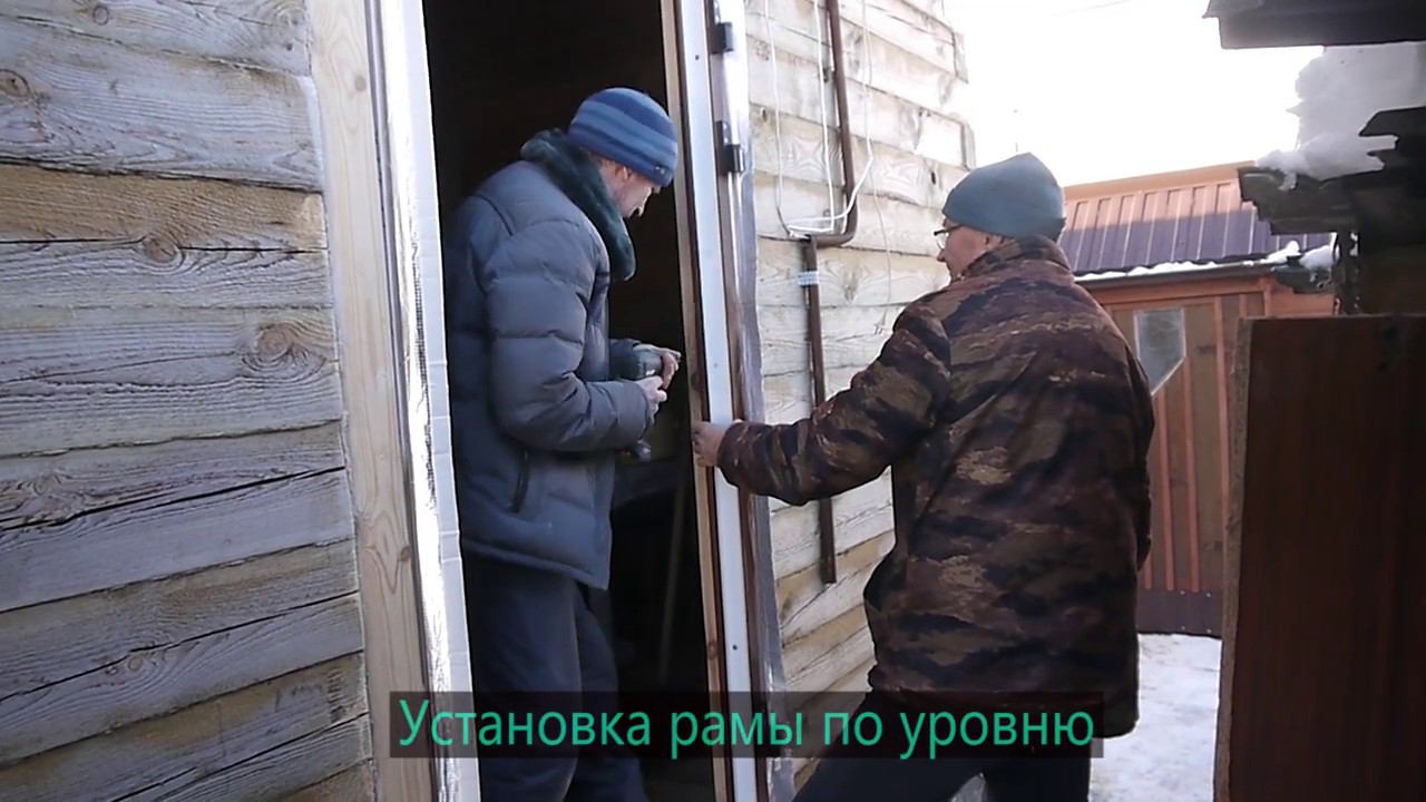 Установка двери ПВХ в дом из бруса