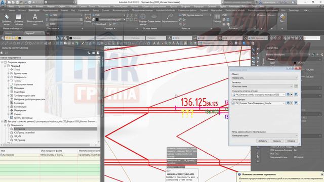 Civil. Метки Клумб и Вида профиля на кривых