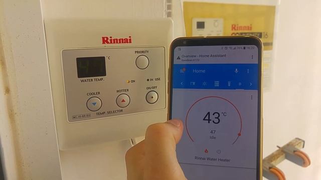 Link to guide: https://blog.yavilevich.com/2020/08/changing-a-dumb-rinnai-water-heater-to-a-smart-one/ Source code: https://github.com/ayavilevich/rinnai-wifi/ At about 0:20 in the video the ESP32 had WiFi issues so it took some time for the MQTT messages to get to HA and update the status in the app. At the end you can see how the modification keeps the system at the temperature that was set in HA regardless of attempts to change.