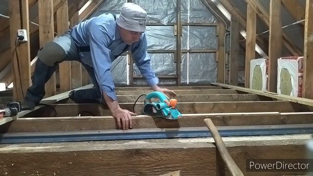 Выравнивание балок на мансарде для пола. Электро рубанок Sturm.