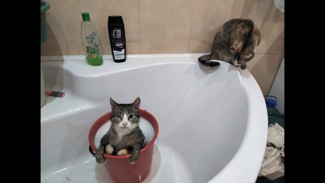 Любитель поплавать котик Марфик и новые повадки пёсика Дружка