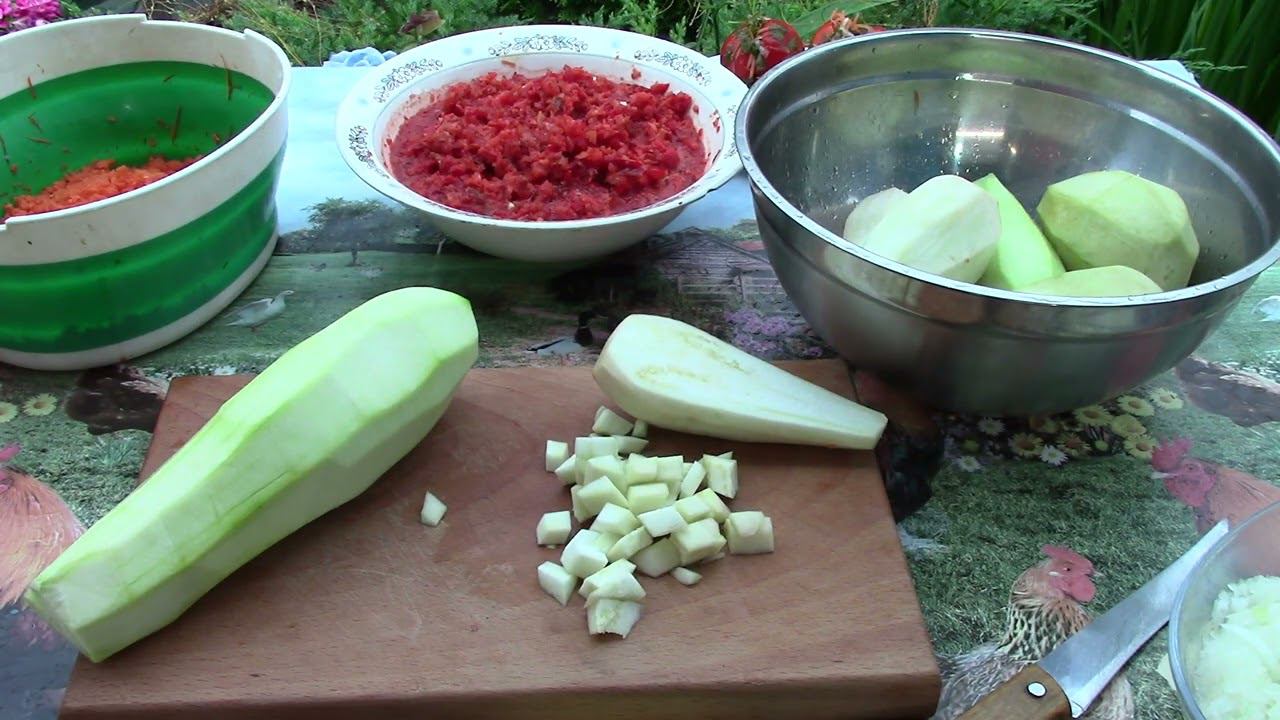Яндекс Дзен - https://dzen.ru/id/620b3fd678237536da3a759a RuTube - https://rutube.ru/channel/24746918/ В контакте https://vk.com/serdukov1974/ Рецепт Кабачок - 2 шт Баклажан - 5 шт Лук - 3 шт Перец - 1 кг Морковь - 3 шт Чеснок -1/2 головки Помидоры - 1 кг Соль, сахар, растительное масло, приправы - по вкусу Уксус 79% на 1 литр -0 1 чайная ложка У меня кориандр, паприка, прованские травы Выход 6 банок по 0,5 литра и 2 баночка 250 мл