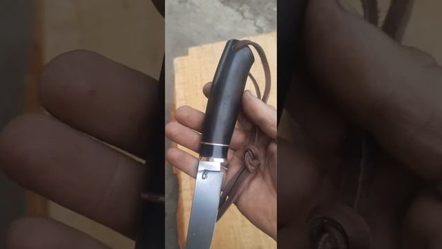 Булатизированая сталь ШХ15СГ,кастомная термичка,латунь,кориан,черный граб,кожа