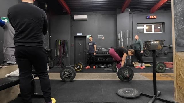 Техника Каждые 60 секунд, 10 подходов 1 рывок в стойку Каждые 60 секунд, 10 подходов 1 рывок в сед В идеале - разминаемся до веса в стойку, на котором закончили на прошлой неделе, и начинаем с него. Пробуем с ним отработать все подходы, и с него начать рывки в сед. Первые 5 - 60 кг потом все 65 кг Сила Чередуя каждые 2,5 минуты, 15 минут 10 приседаний со штангой на груди Максимум строгих подтягивания Приседания без долгих пауз, быстро, технично. Вес - к прошлой неделе добавляем 2-5 кг. Подтягивания - заканчиваем, когда нужно сделать паузу внизу. Если 15+ до подбородка легко - делаем до груди. * 85 (кг) 30 (повторения) Тяжело приседать и тяжело подтягиваться Комплекс 9AMRAP 7 подносов ног 6 махов гирей 16-24 кг 5 прыжков на коробку или 9AMRAP 15 подносов ног 10 становых тяг 50/35 кг 5 рывков Пробуем улучшить результаты прошлой недели. * 126 (повторения) Обманулся со временем и сделал 4р+1 за 8 минут и потом еще 5 подносов